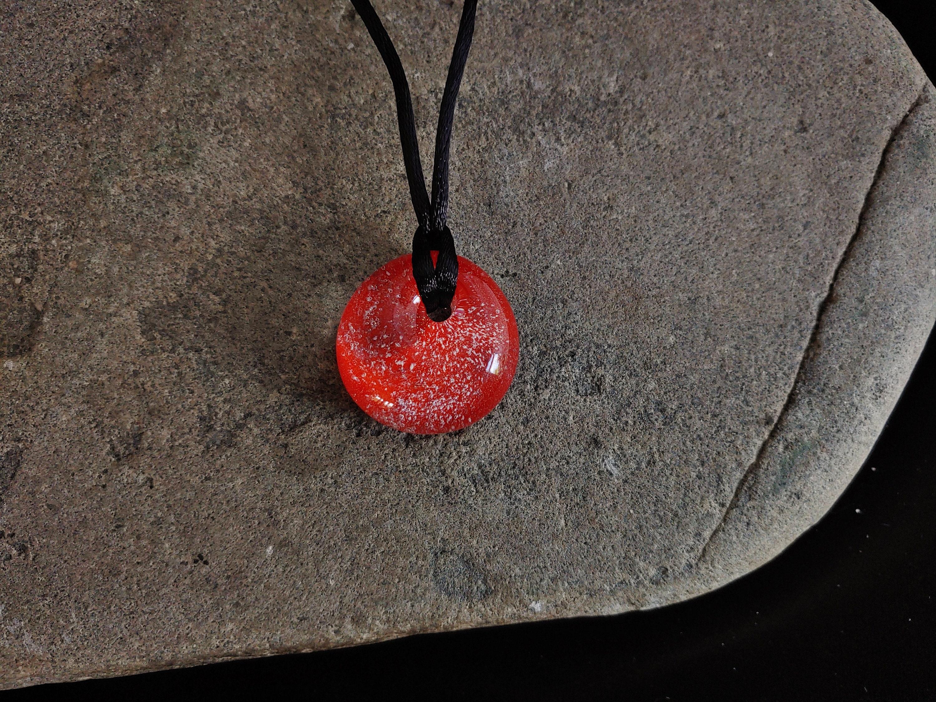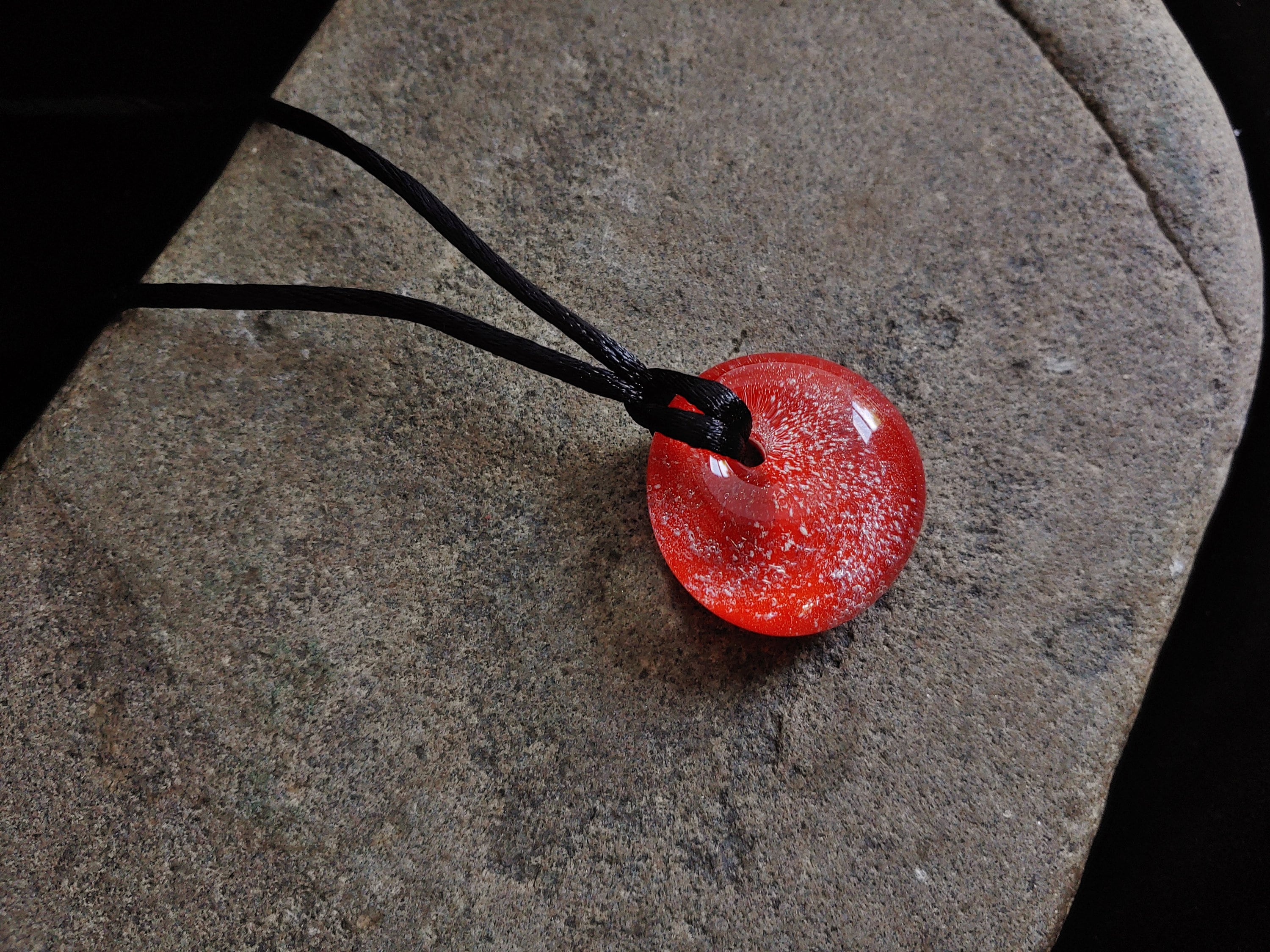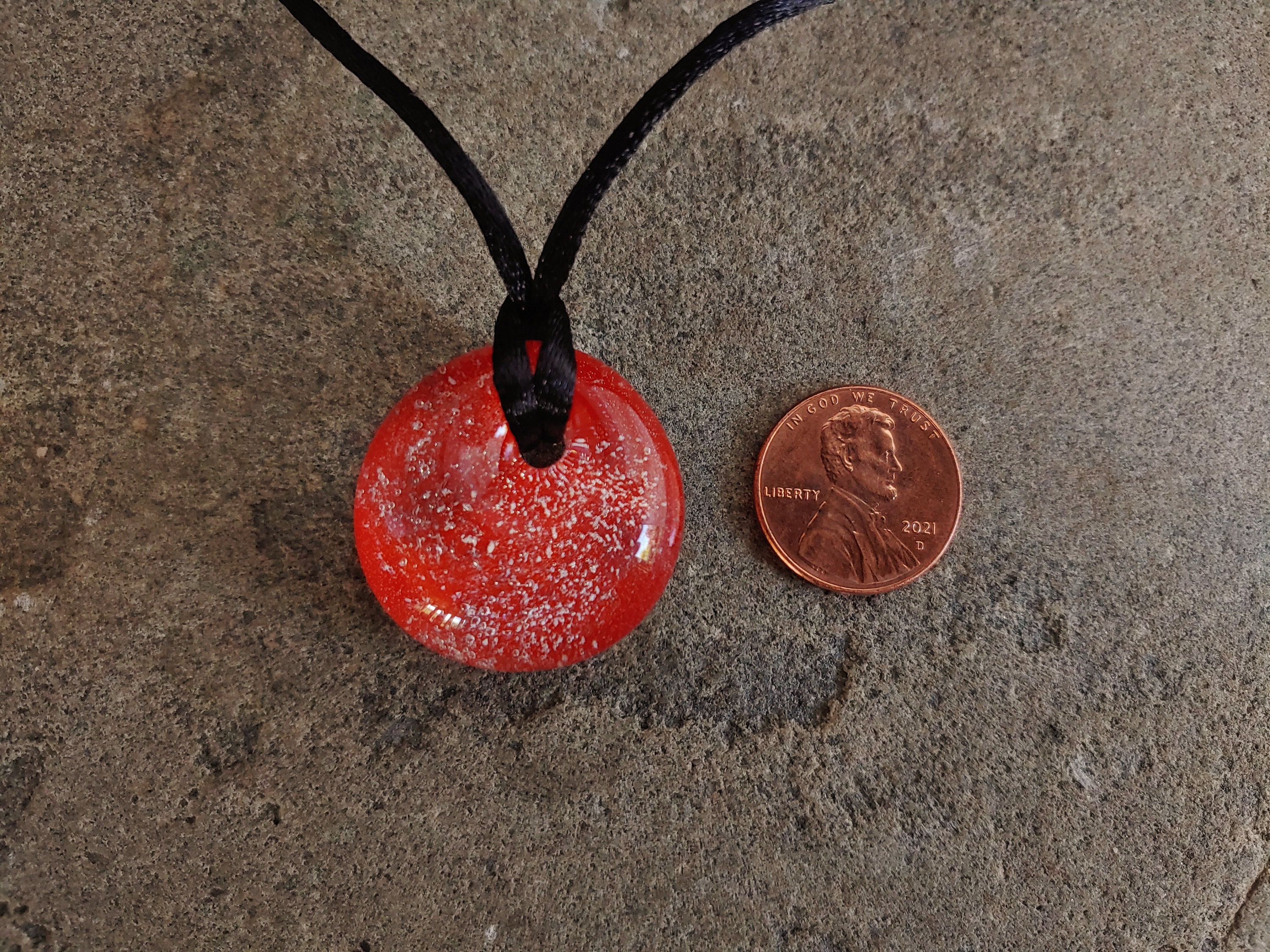 This version of memorial pendant is a simple, clean design; with the cord looping directly through the pendant. Cremation ash is permanently encased in extra durable scientific glass (borosilicate) in a graceful pattern, similar to a starry night sky. This pendant is completely waterproof. The last photo has a coin for size reference, but the size and color can be customized - just send me a message if there's something that you're interested in.