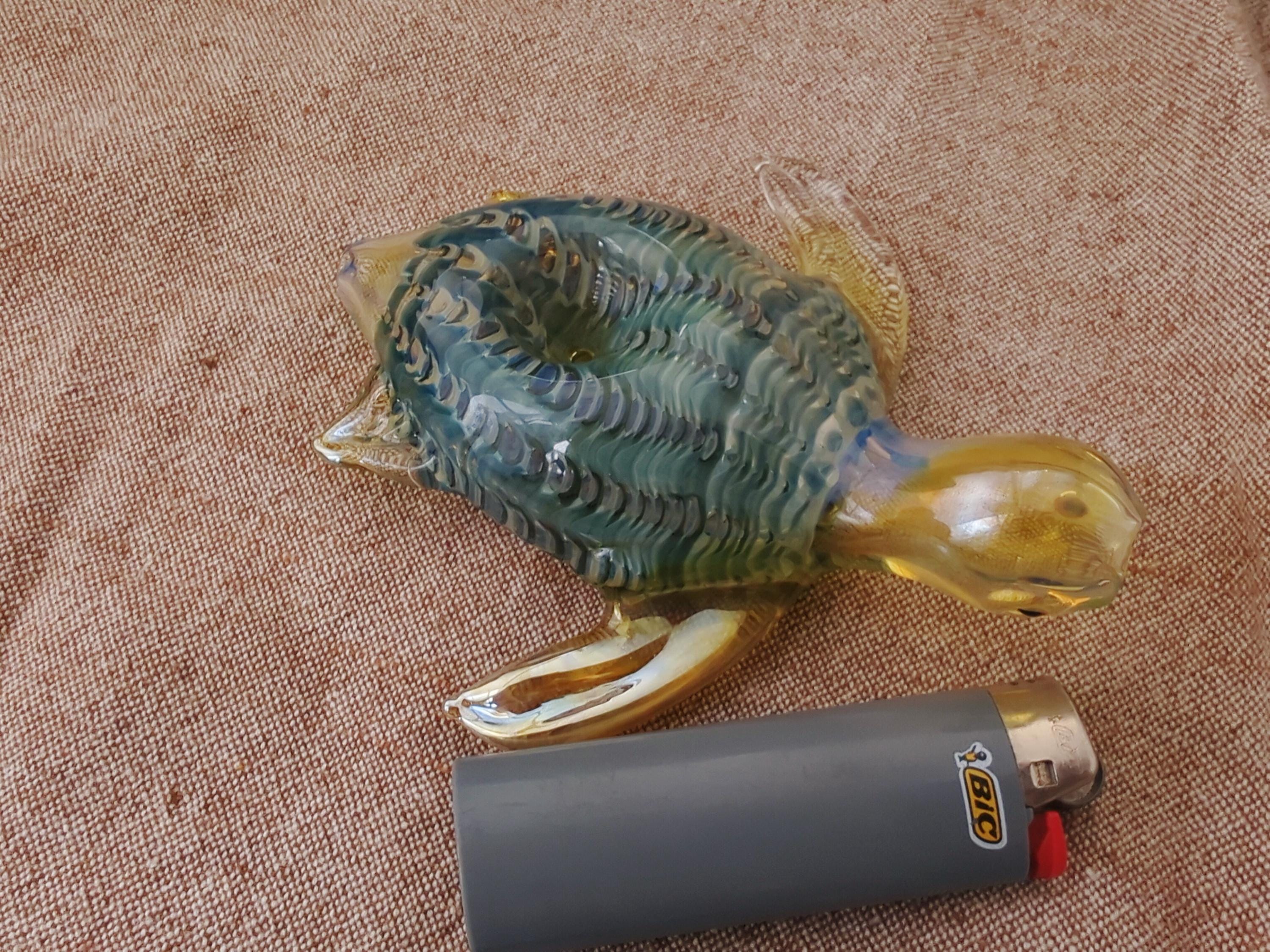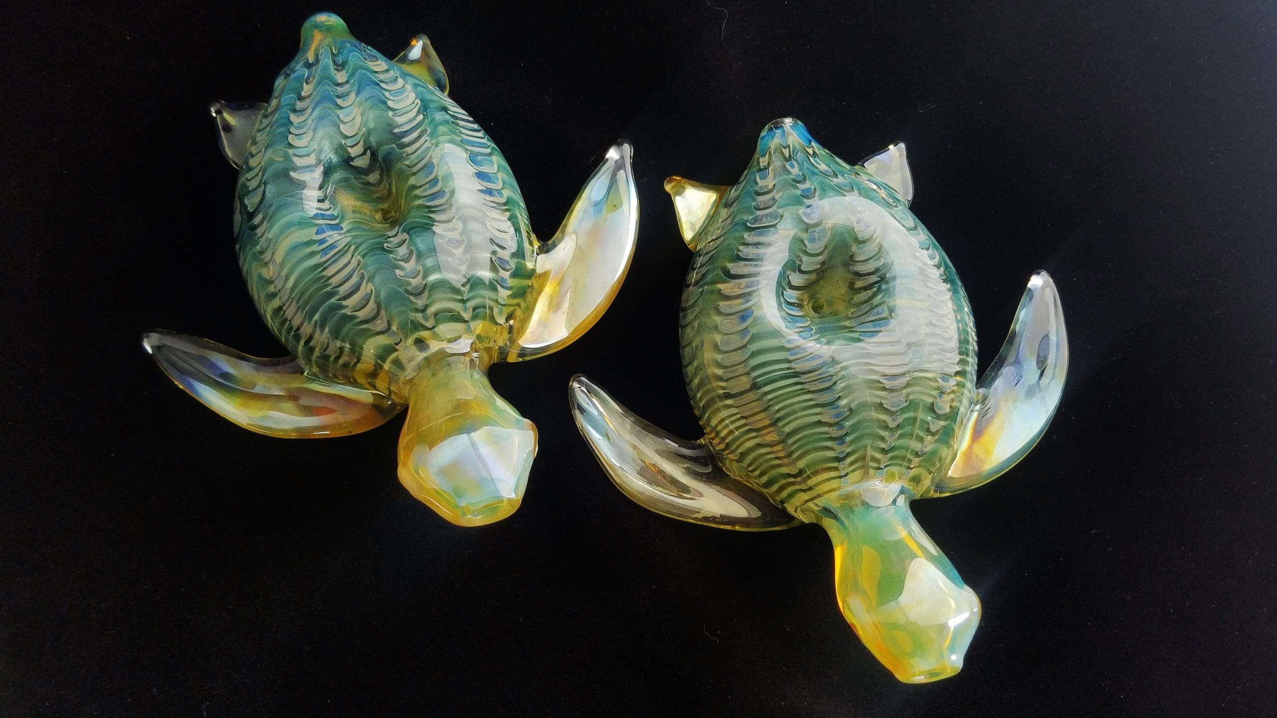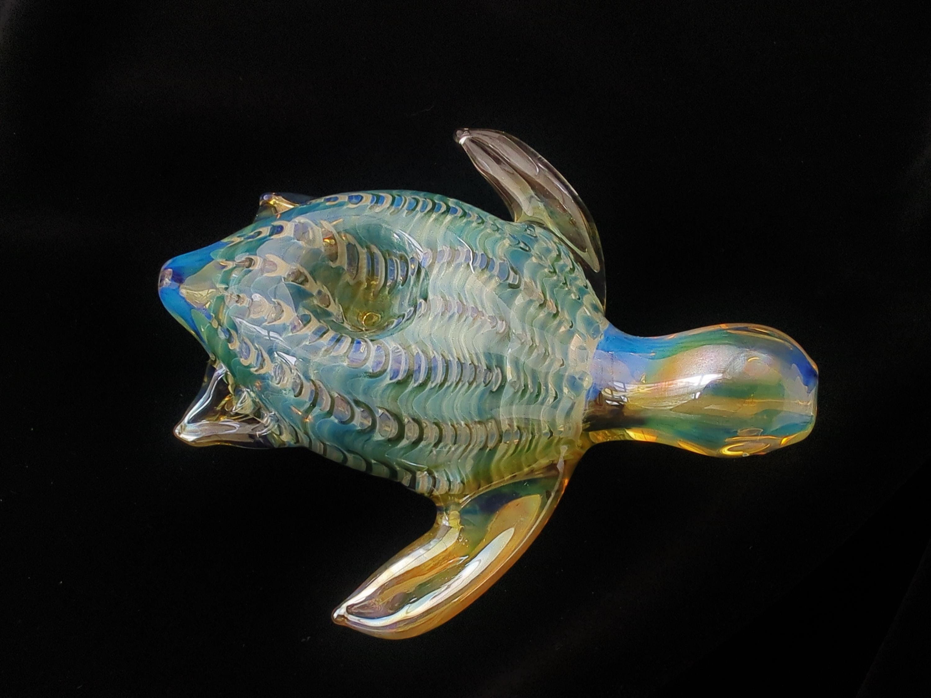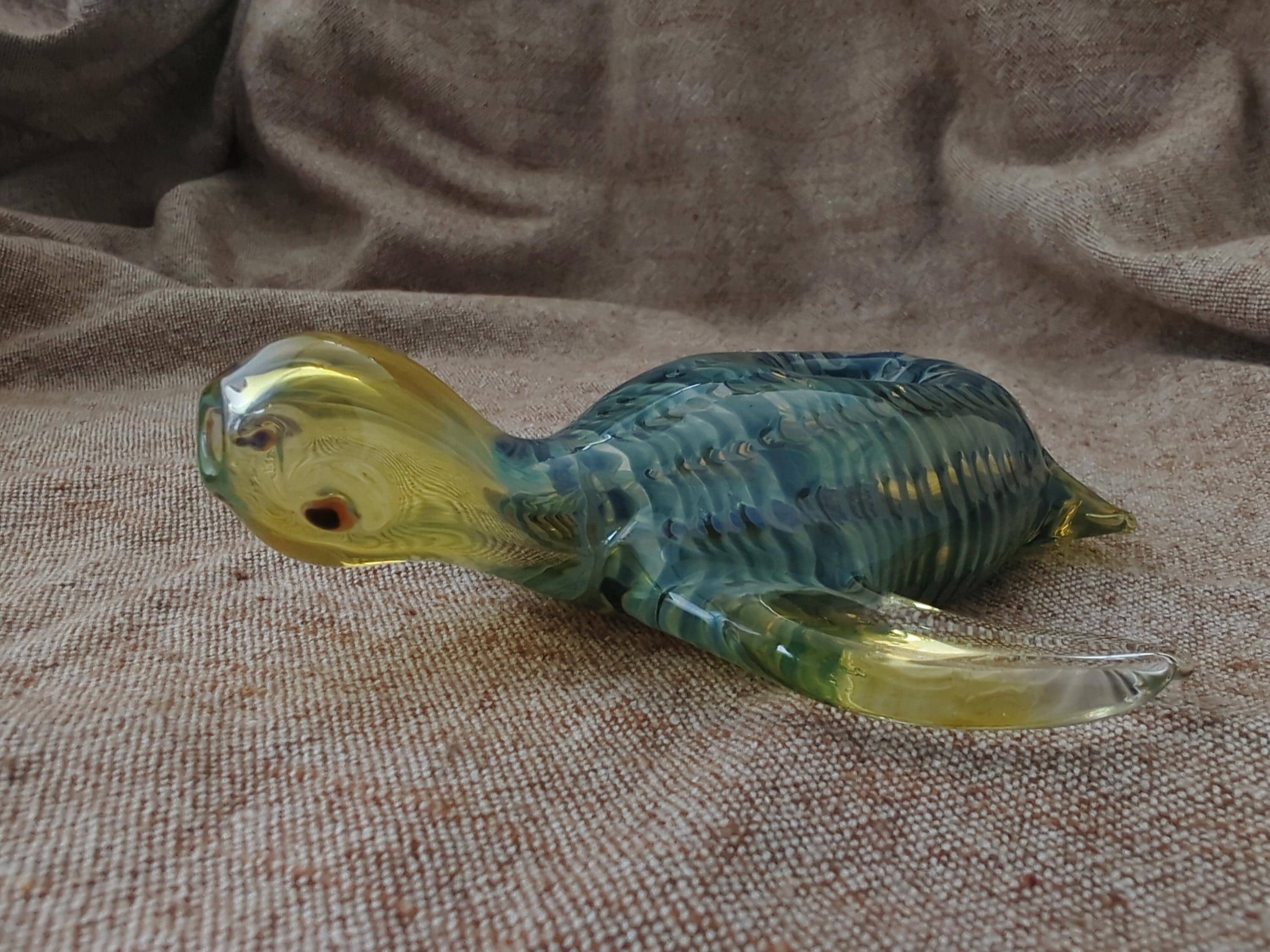 This beautiful, vibrant sea turtle pipe has been meticulously sculpted to include many fine details. Graceful fins and the many other details make it seem to be ready to swim away.